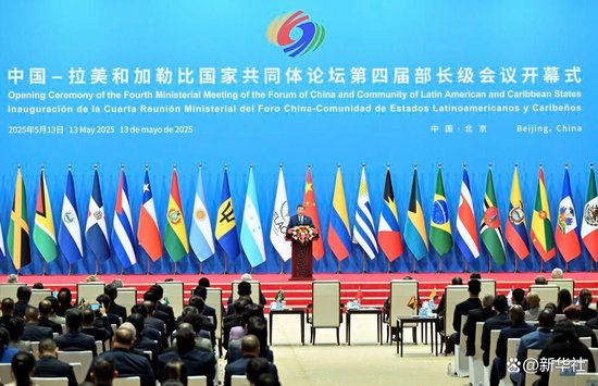 新华社北京5月13日电(记者马卓言、冯歆然)5月13日上午,国家主席习近平在国家会议中心出席中国-拉美和加勒比国家共同体论坛第四届部长级会议开幕式并发表主旨讲话。习近平宣布,中方同拉方携手启动五大工程,共谋发展振兴,共建中拉命运共同体。
