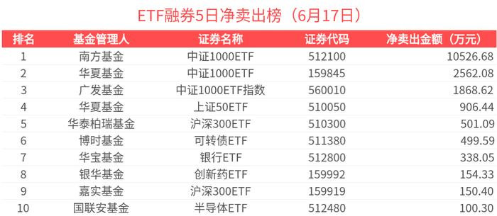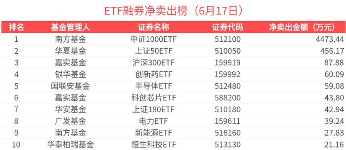 融券净卖出金额超500万元的有1只,中证1000ETF(512100.SH)杠杆资金显著流出,净流出4473.44万元。